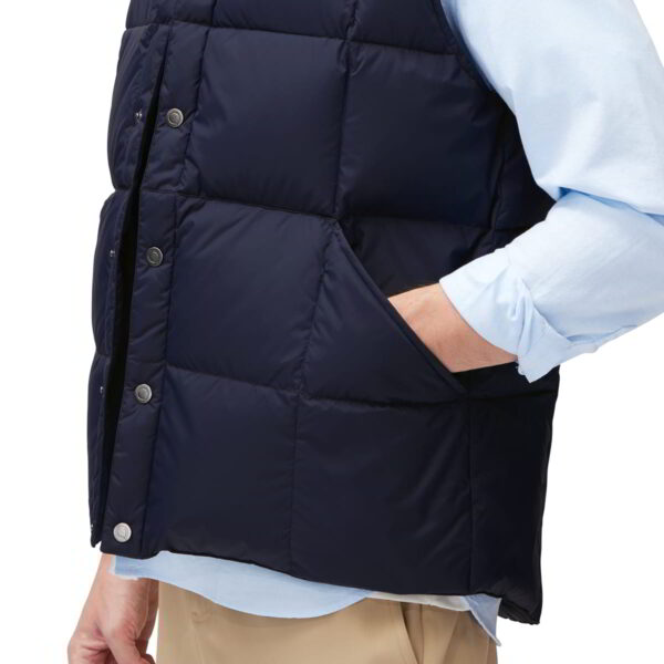 expand_moreThe A-line Vest combines lightweight warmth with everyday versatility. Its premium 650-fill goose down provides impressive heat retention while remaining packable and easy to wear. The snap-button front allows quick layering, whether outdoors or on the move, and diagonal hand-warmer pockets offer fast access and comfort in cold temperatures. Designed for those who want premium down insulation at exceptional value, this vest is a practical core-warming piece for winter.