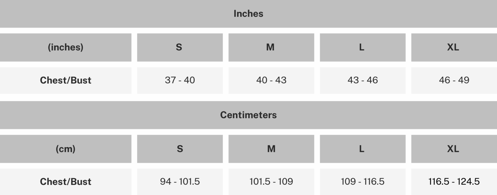 Measure the fullest part of your chest/bust with arms relaxed down at sides.